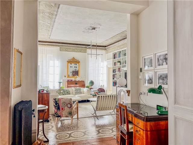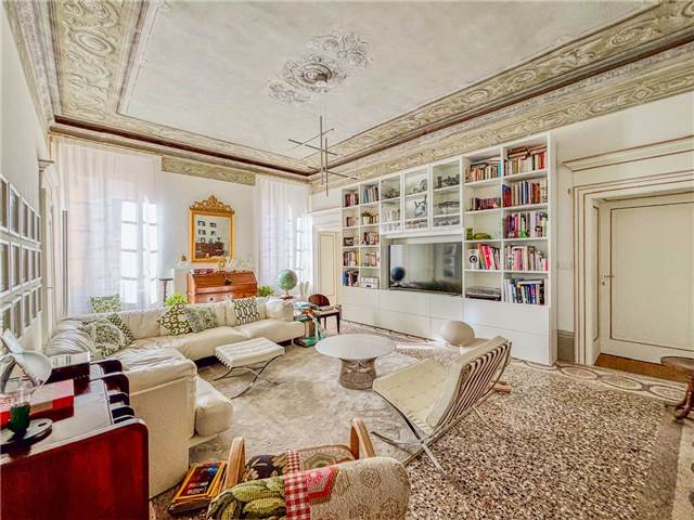 All’interno di questa cornice senza tempo si apre un **appartamento di rappresentanza** di circa **260 mq**, una dimora che coniuga la **maestosità del passato** con il **comfort e la raffinatezza della vita contemporanea**.